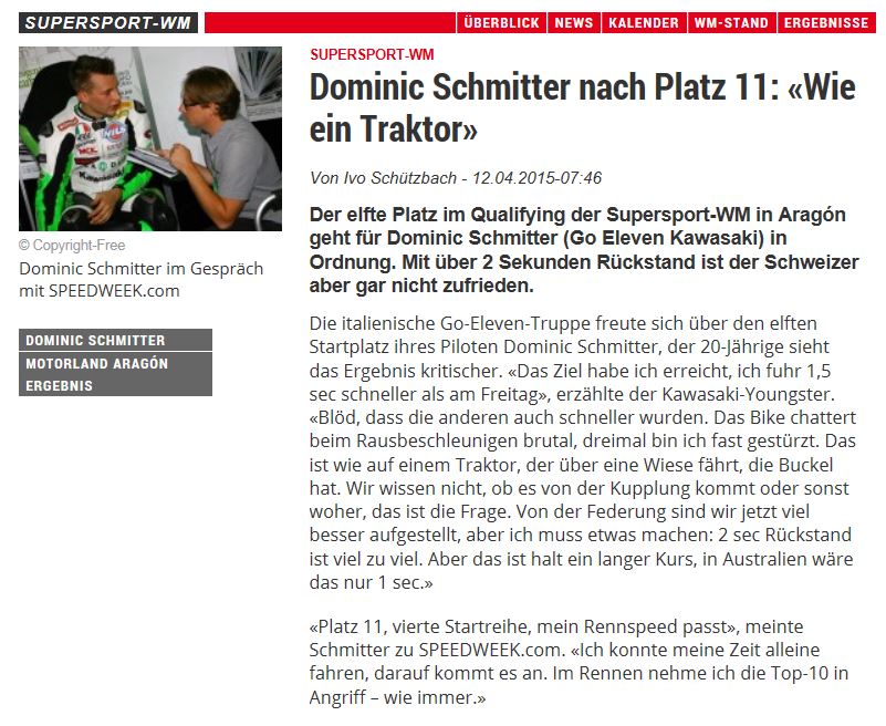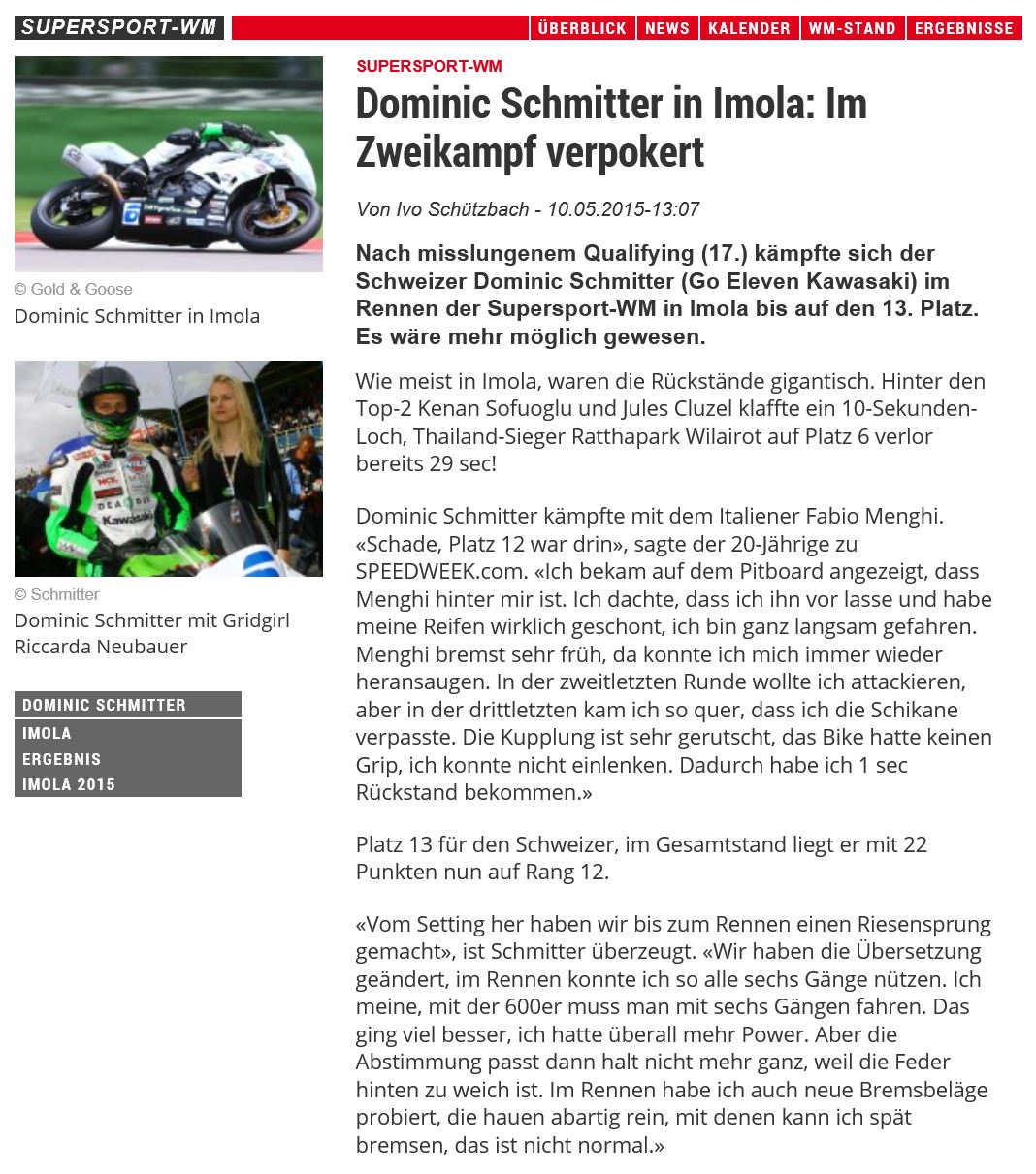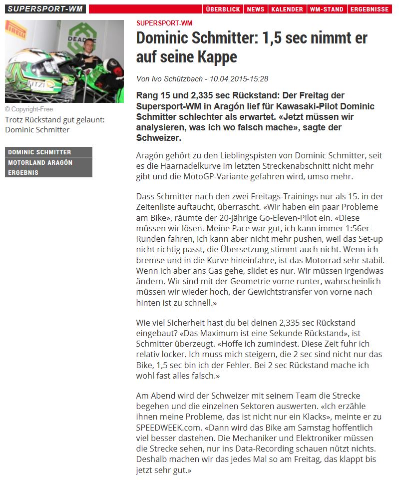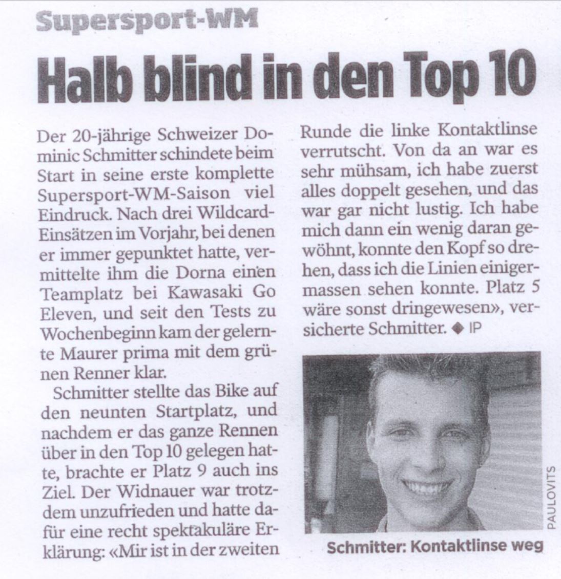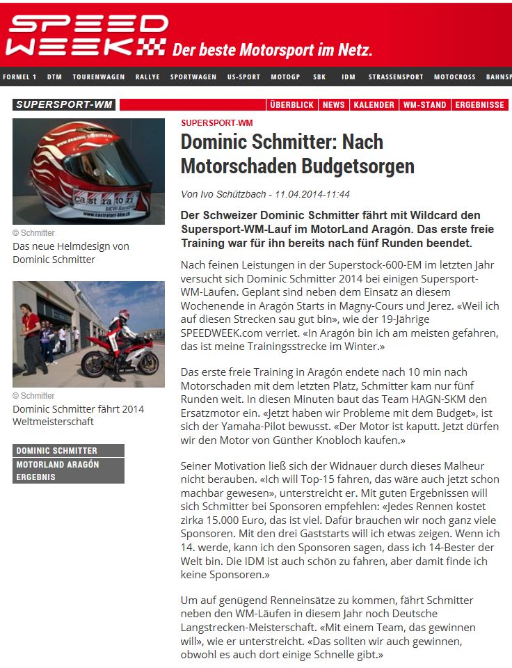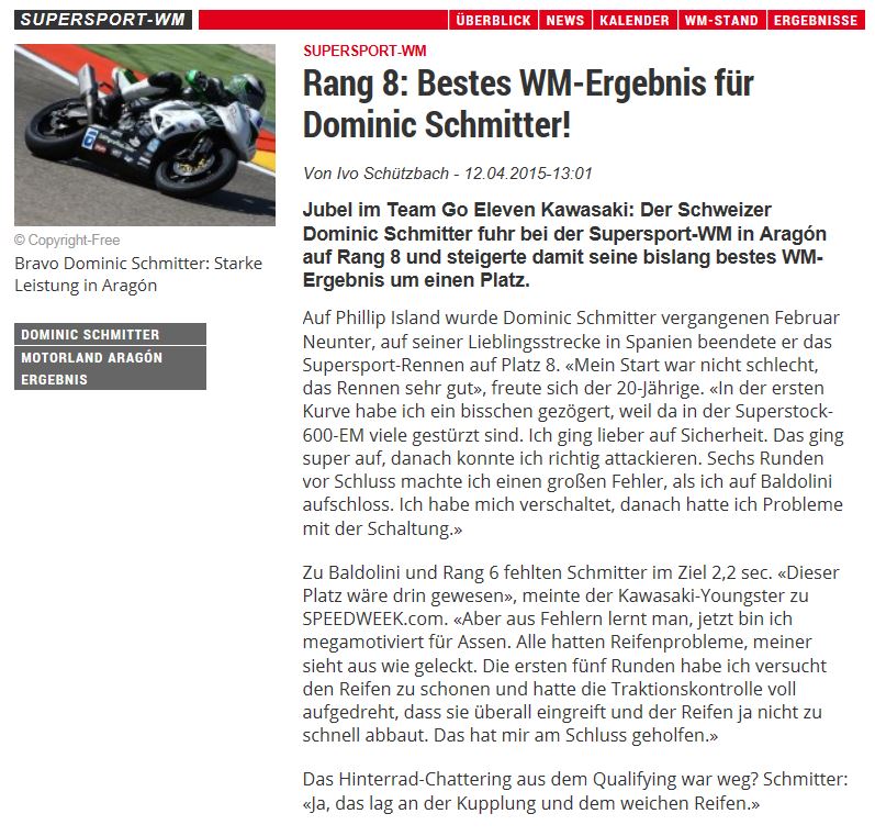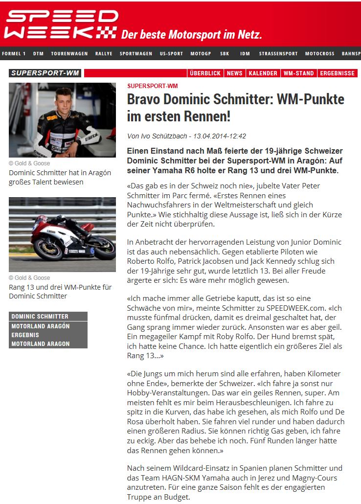 • Bravo Dominic Schmitter   WM Punkte im ersten Rennen