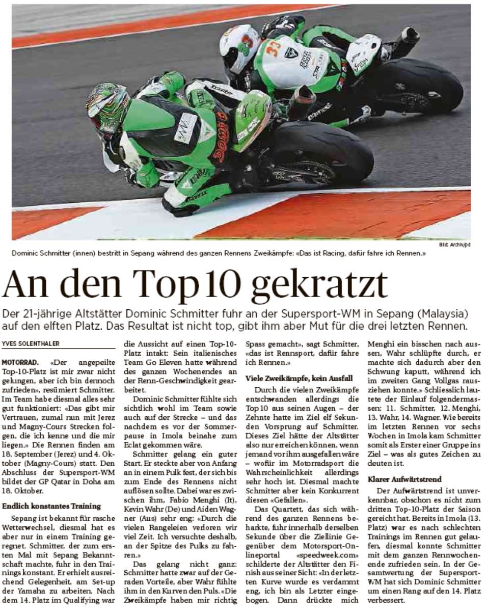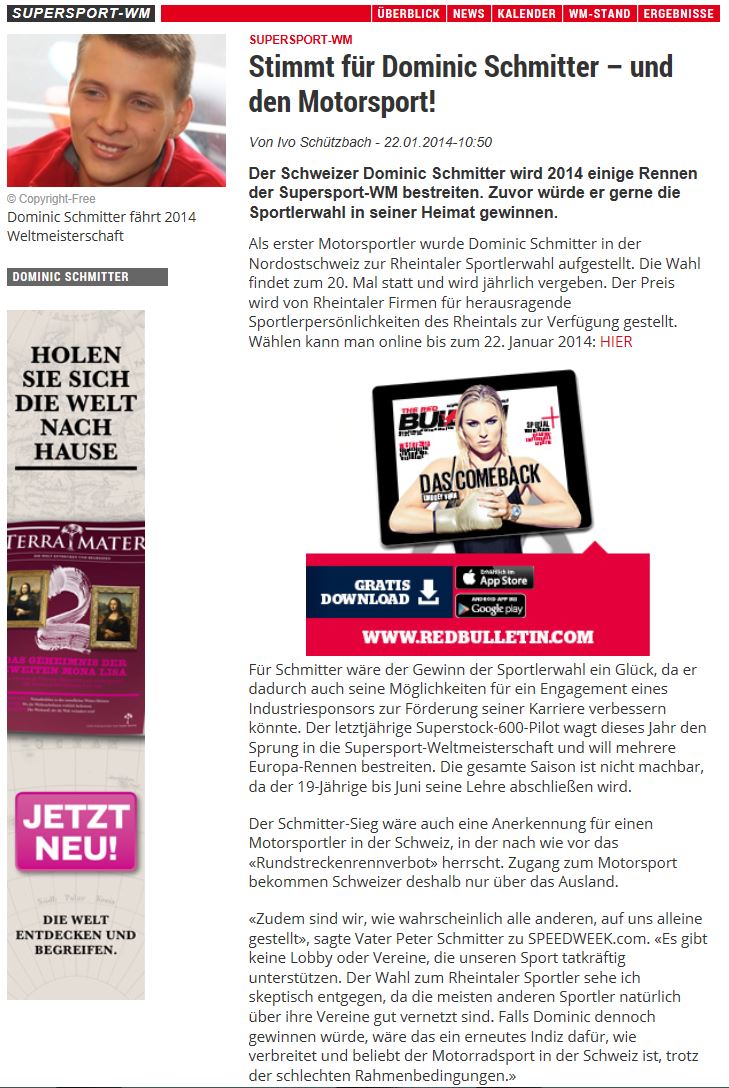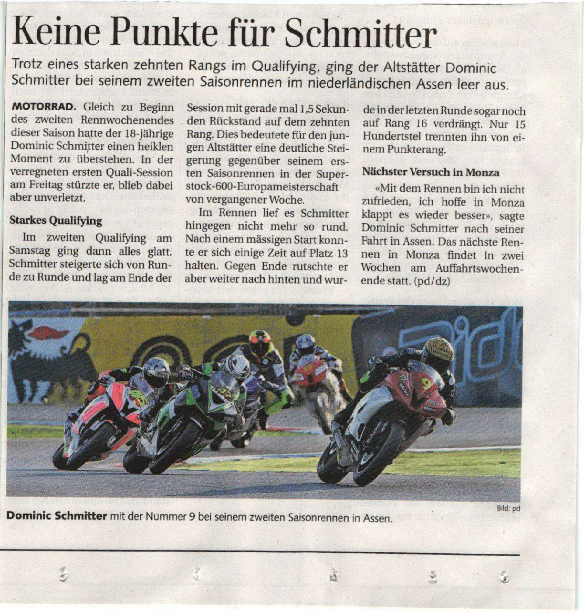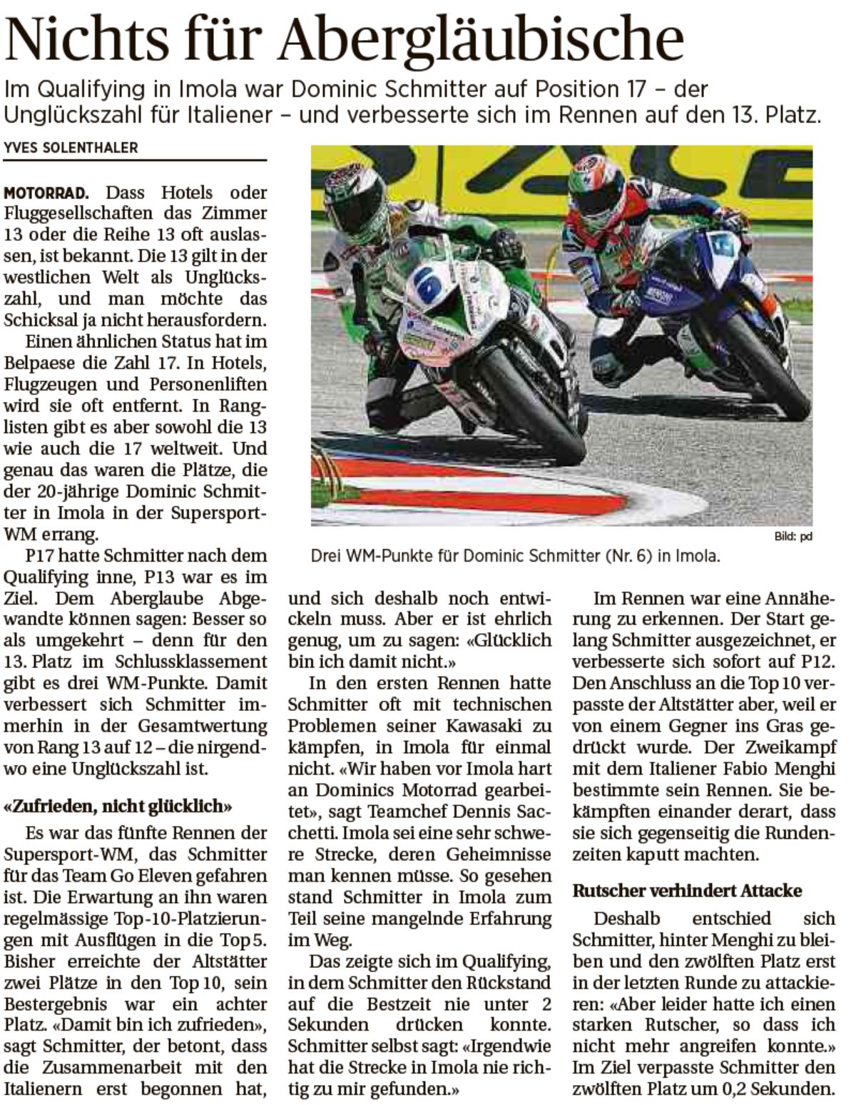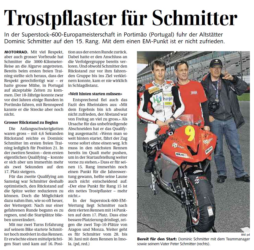 • Bravo Dominic Schmitter   WM Punkte im ersten Rennen