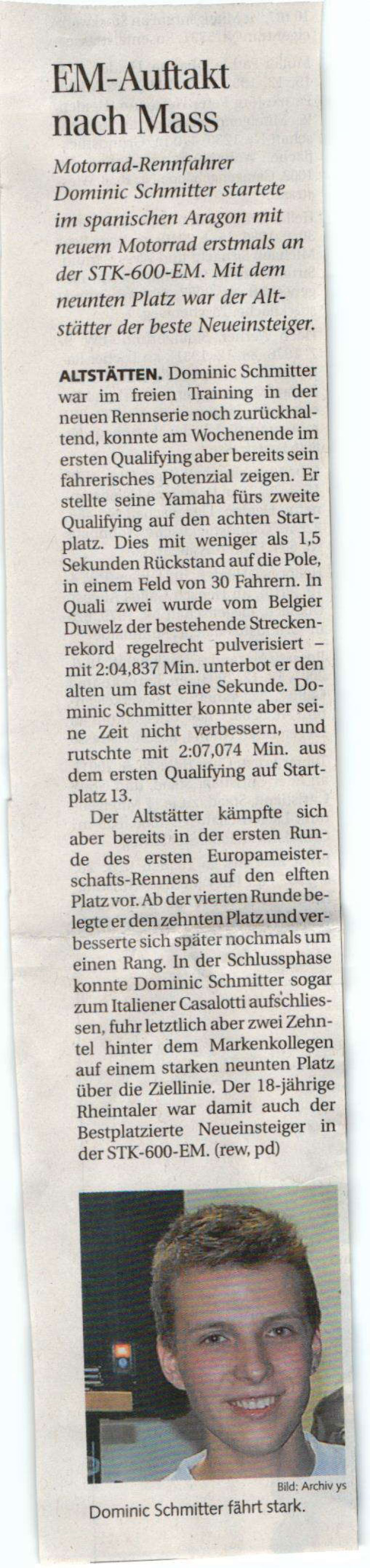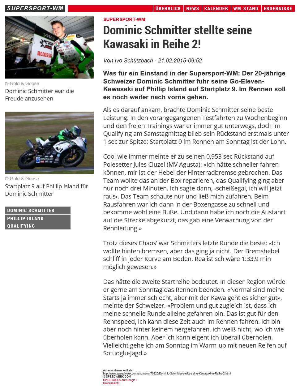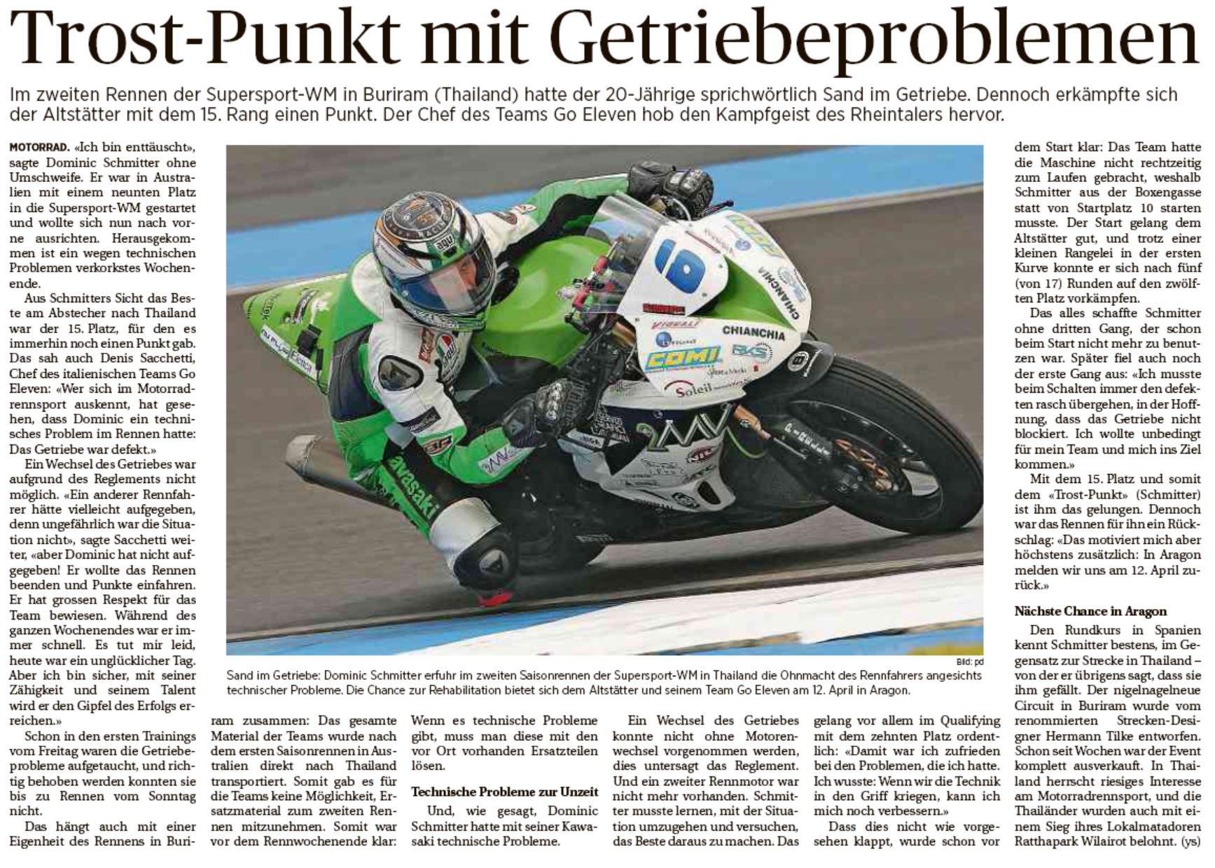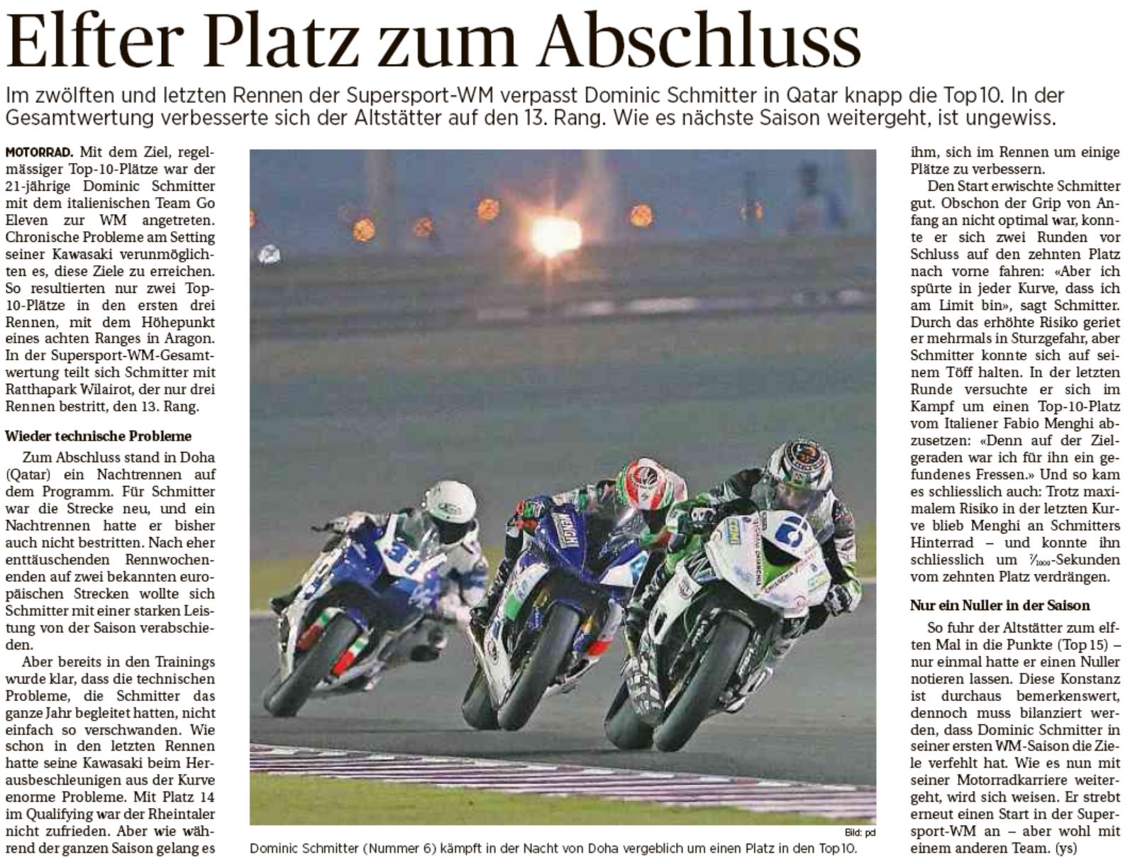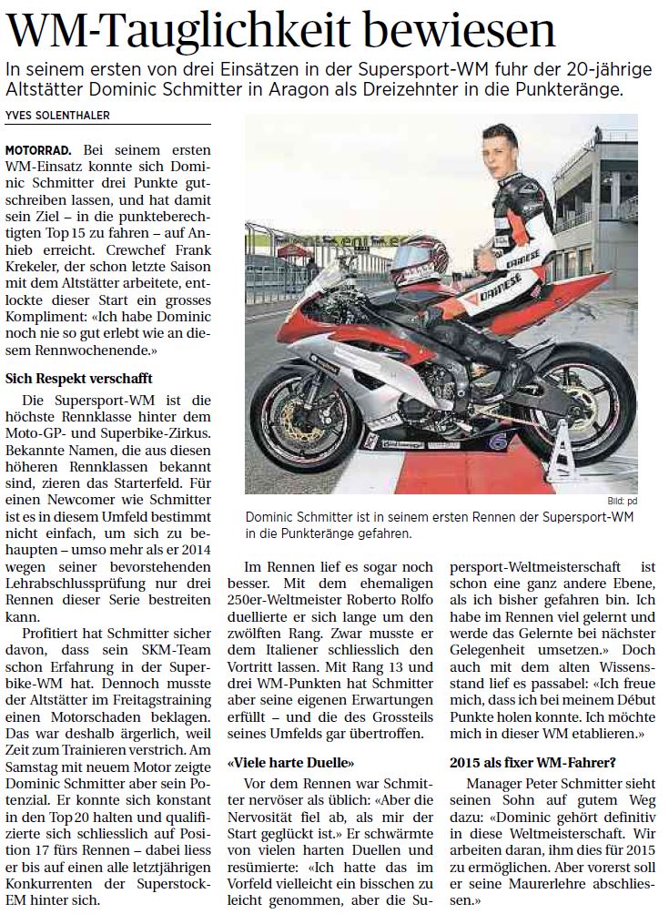 • Bravo Dominic Schmitter   WM Punkte im ersten Rennen