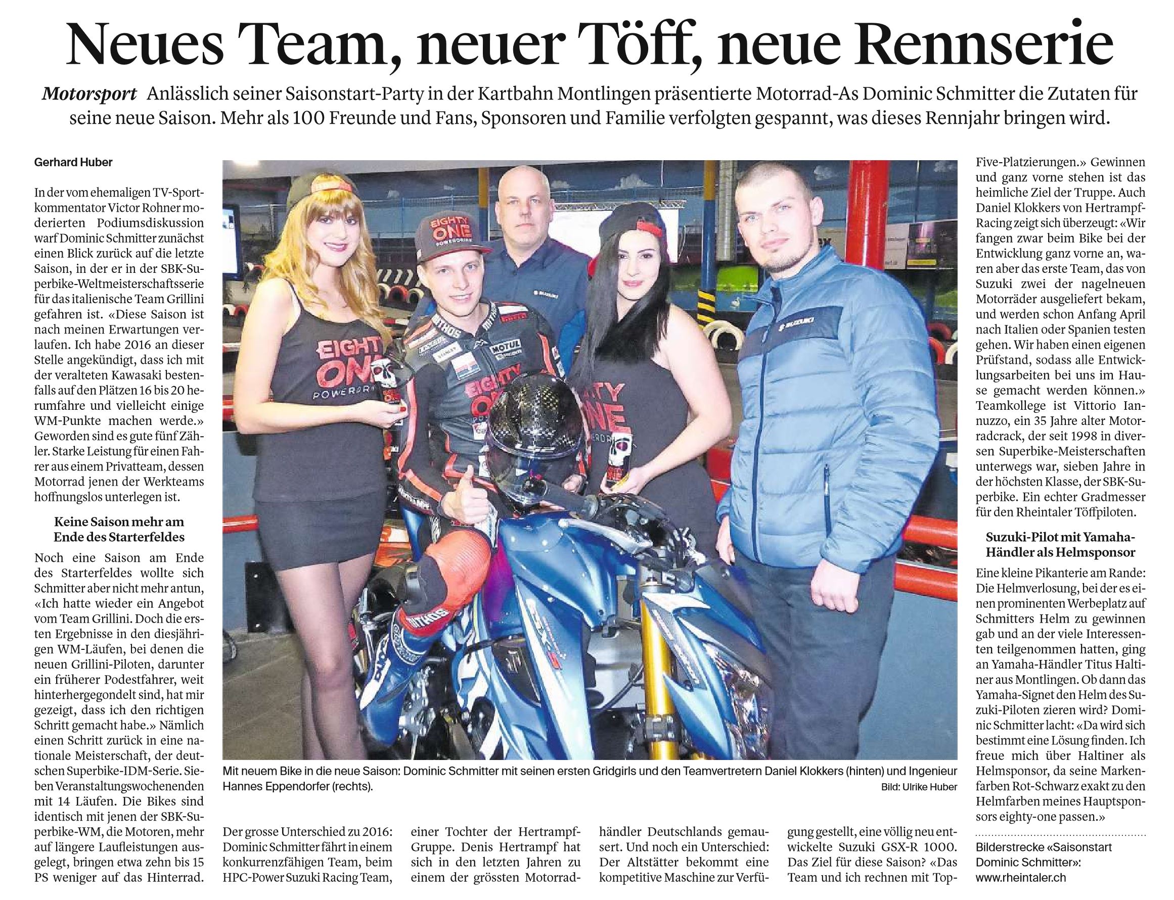 • 2017 Erster Einsatz mit der brandneuen Suzuki
