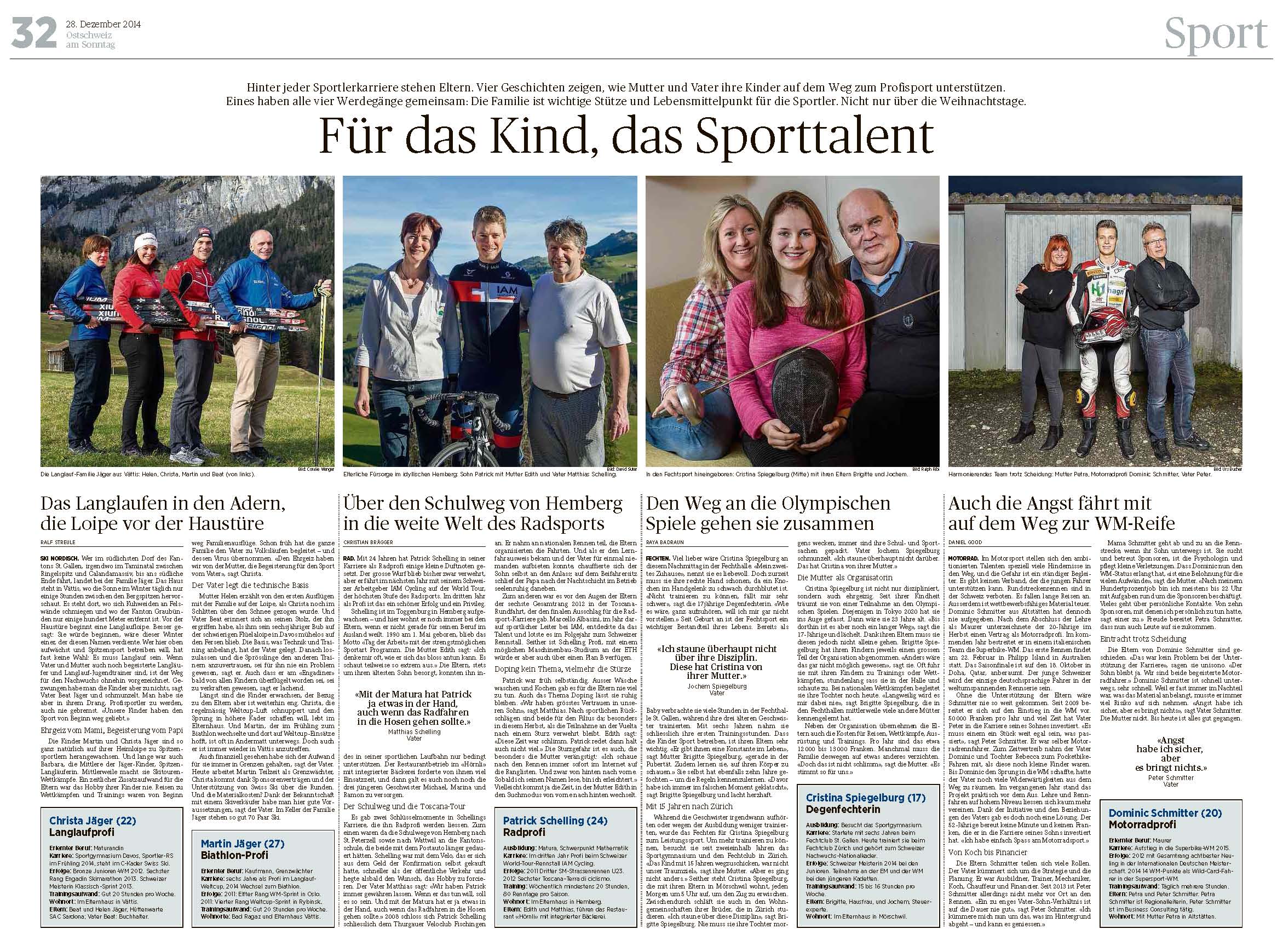 • Fr das Kind   Das Sporttalent   28.12.14 Ostschweiz Sonntagsausgabe
