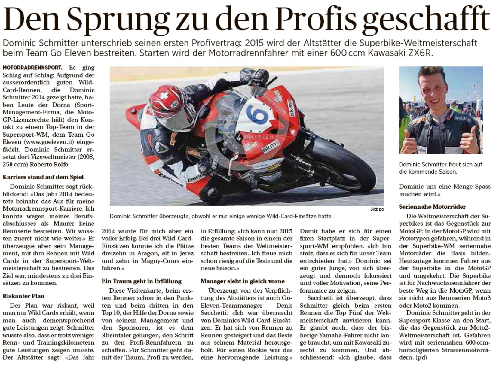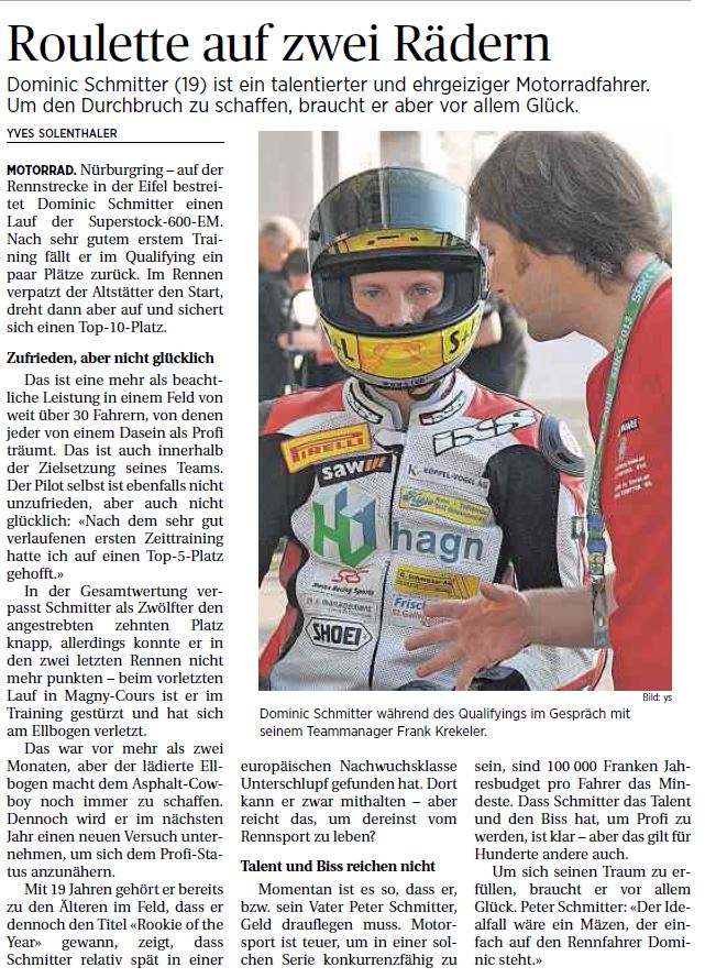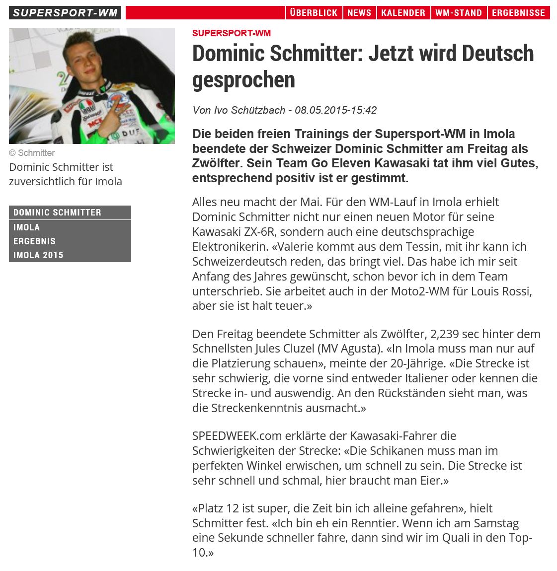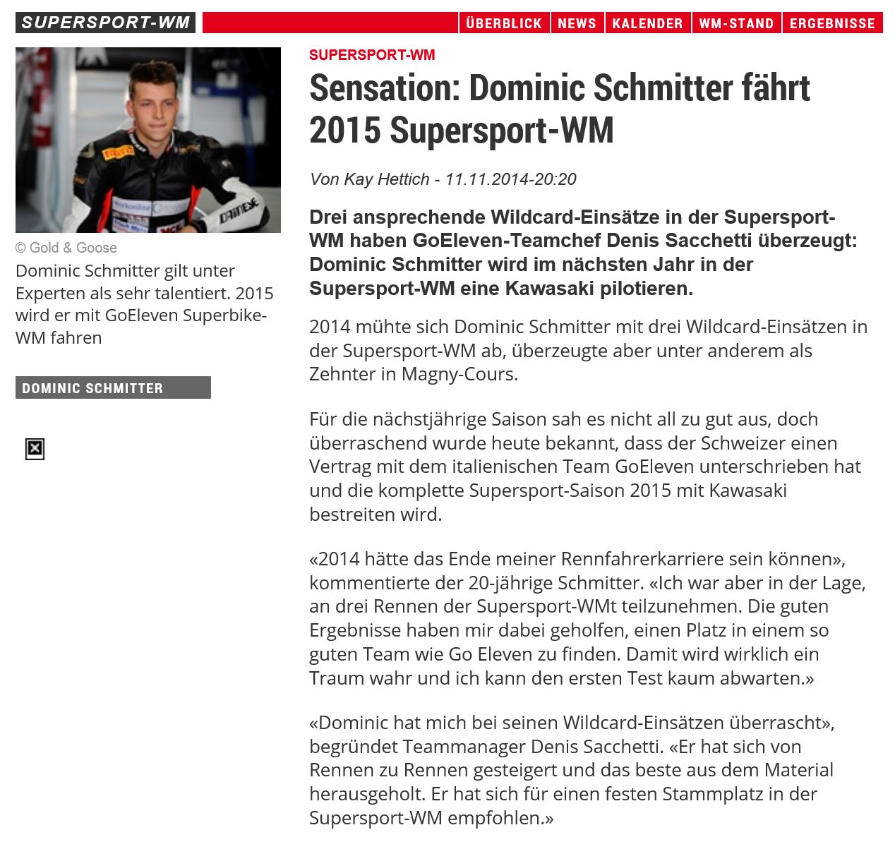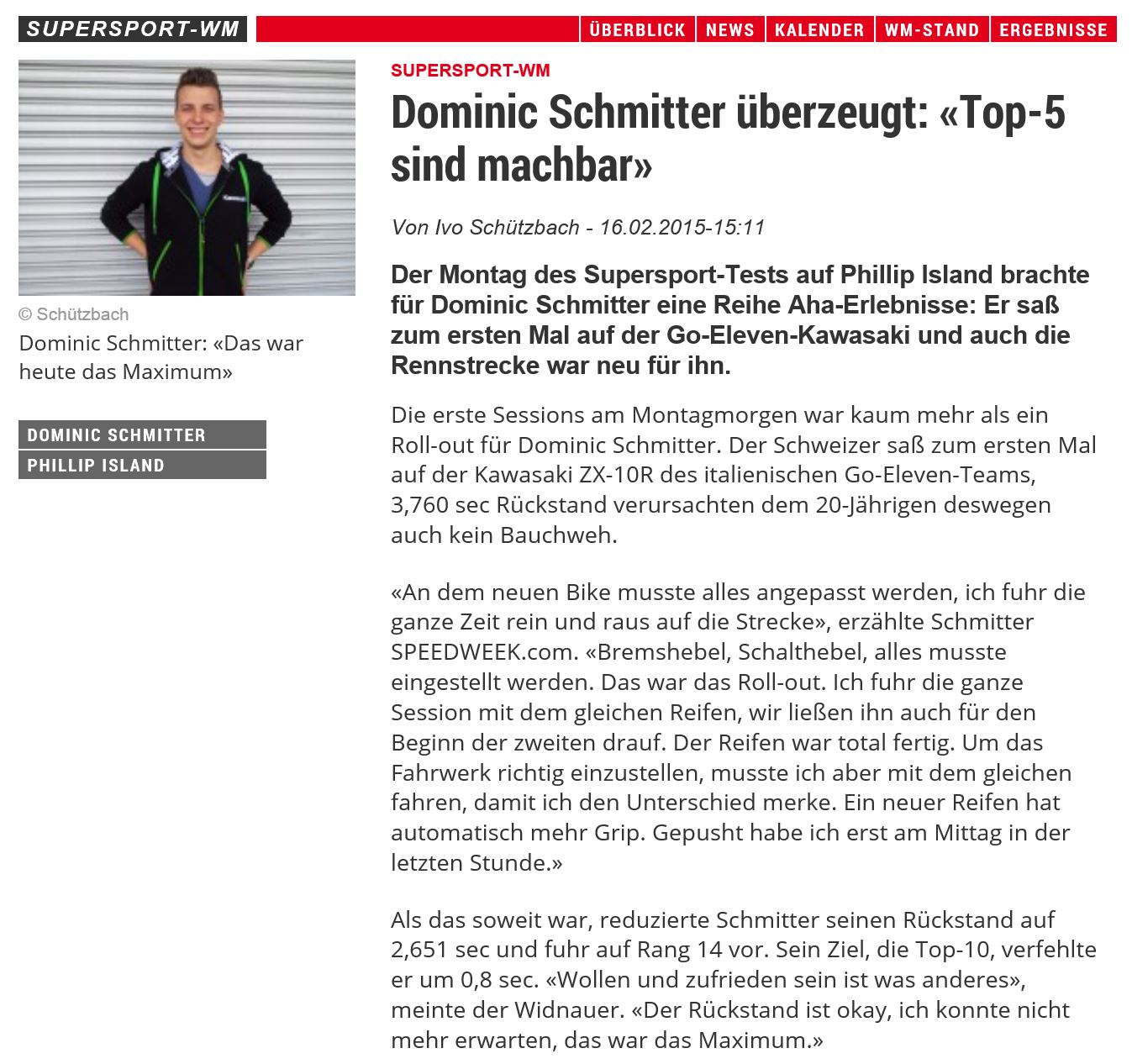 • Sensation Dominic Schmitter fhrt Supersport WM