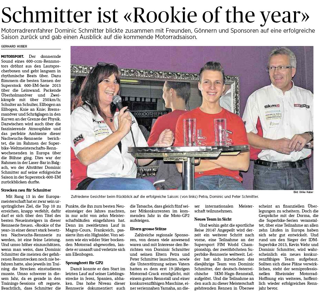 • Schmitter ist Rookie of the Year