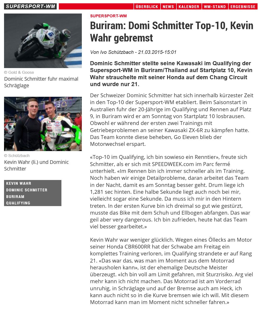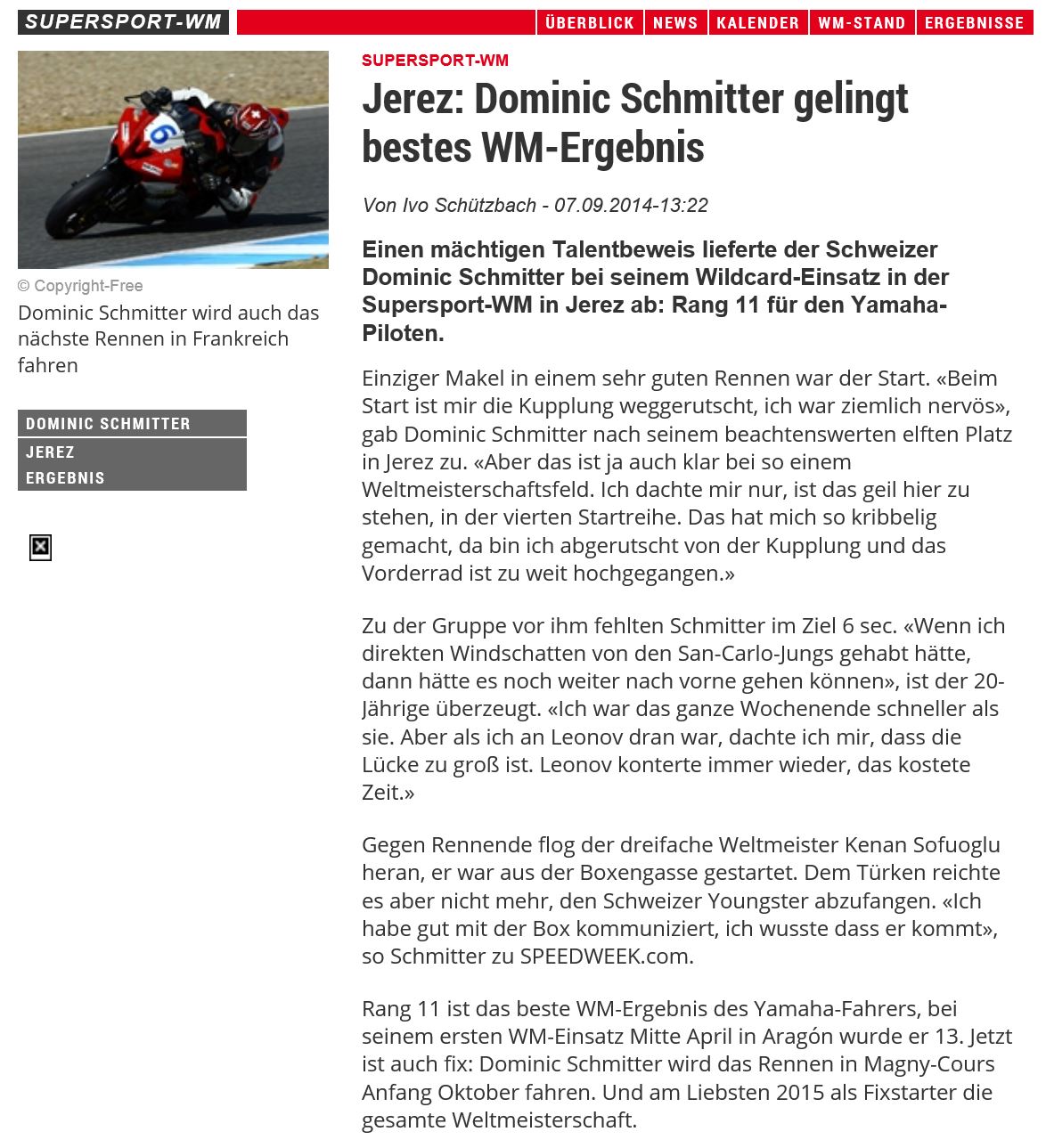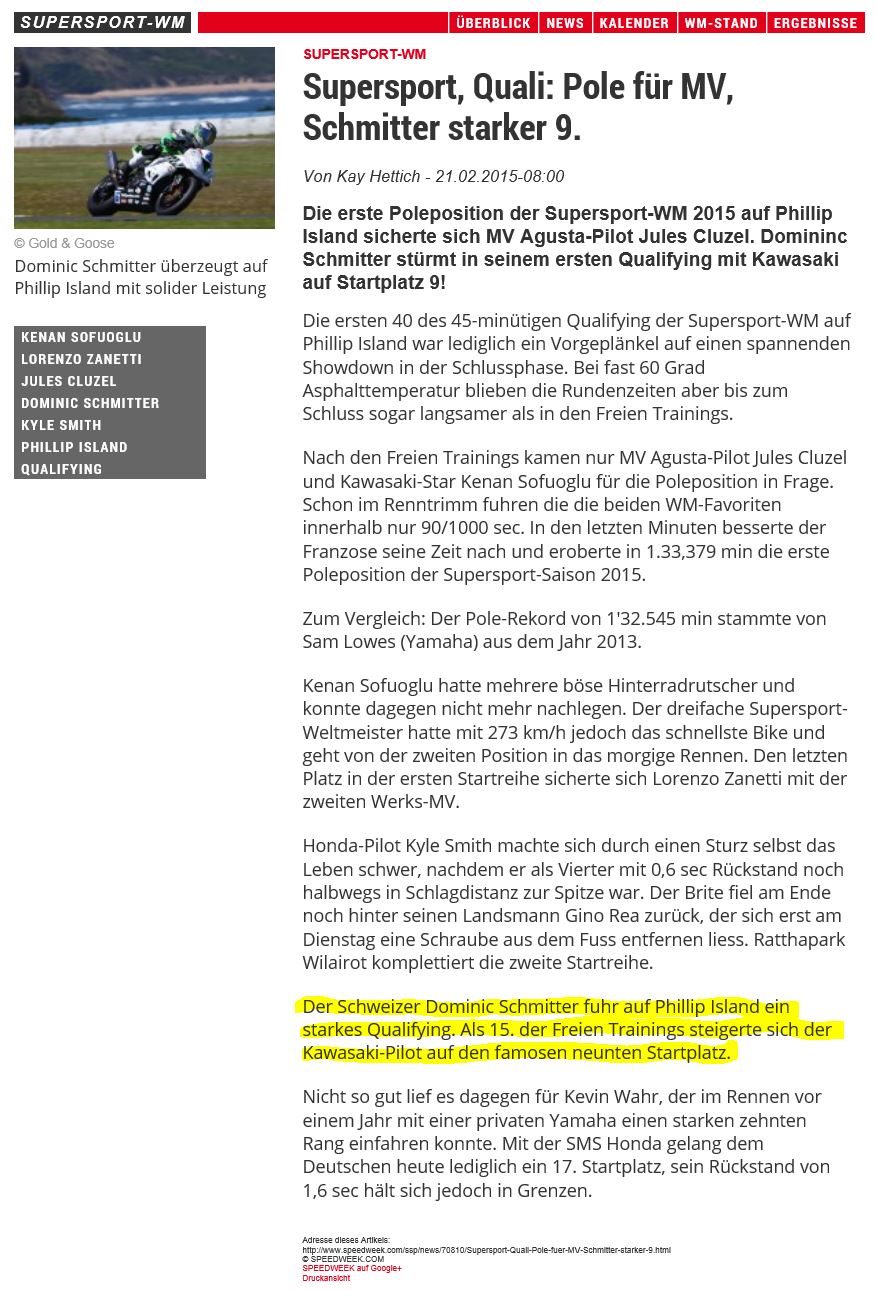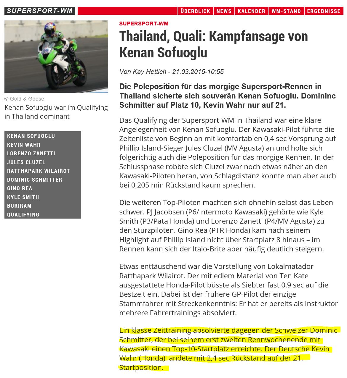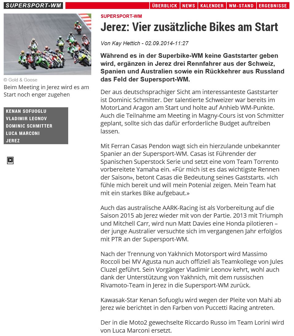 08 Supersport WM 3 WildCards jeweils in Top15 2014
