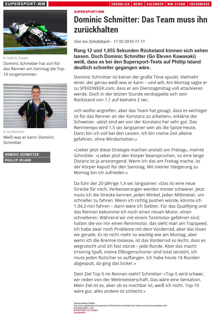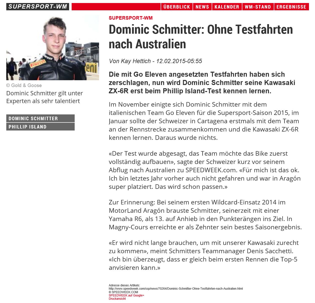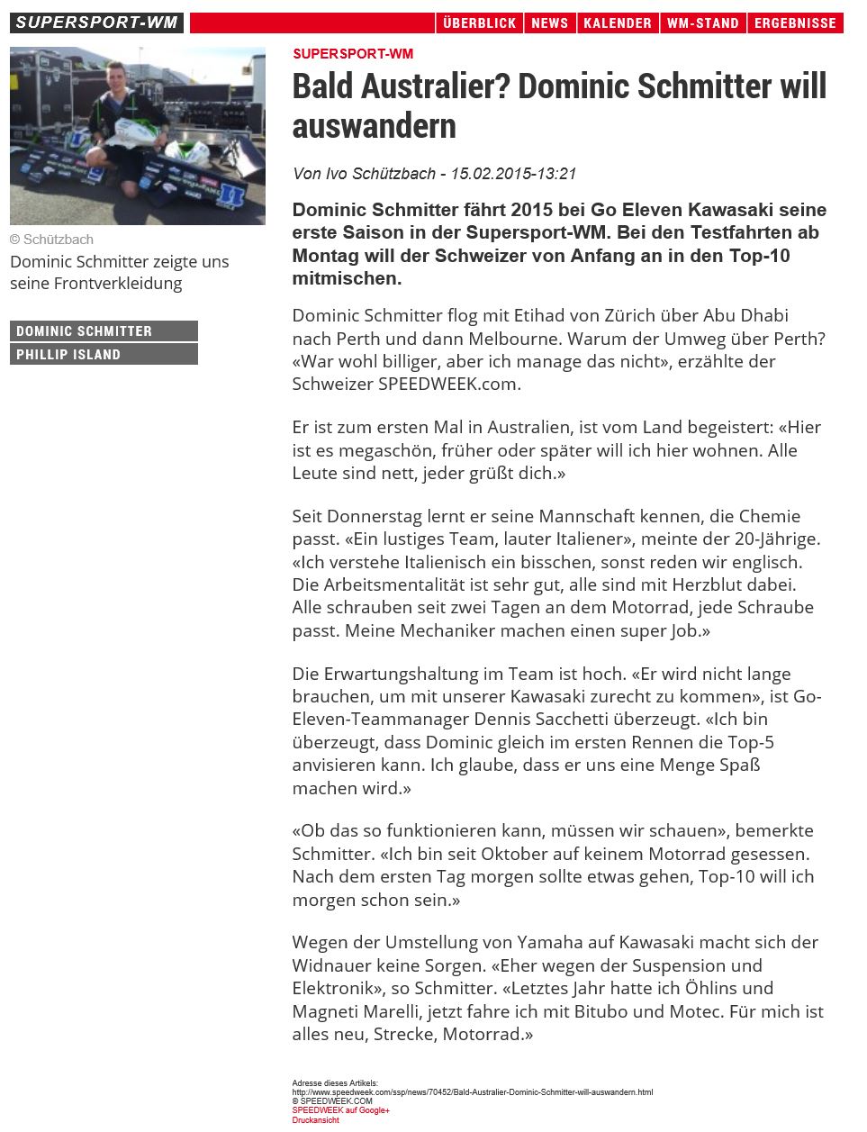 • Speedweek   Schmitter ohne Testfahrten nach Australien