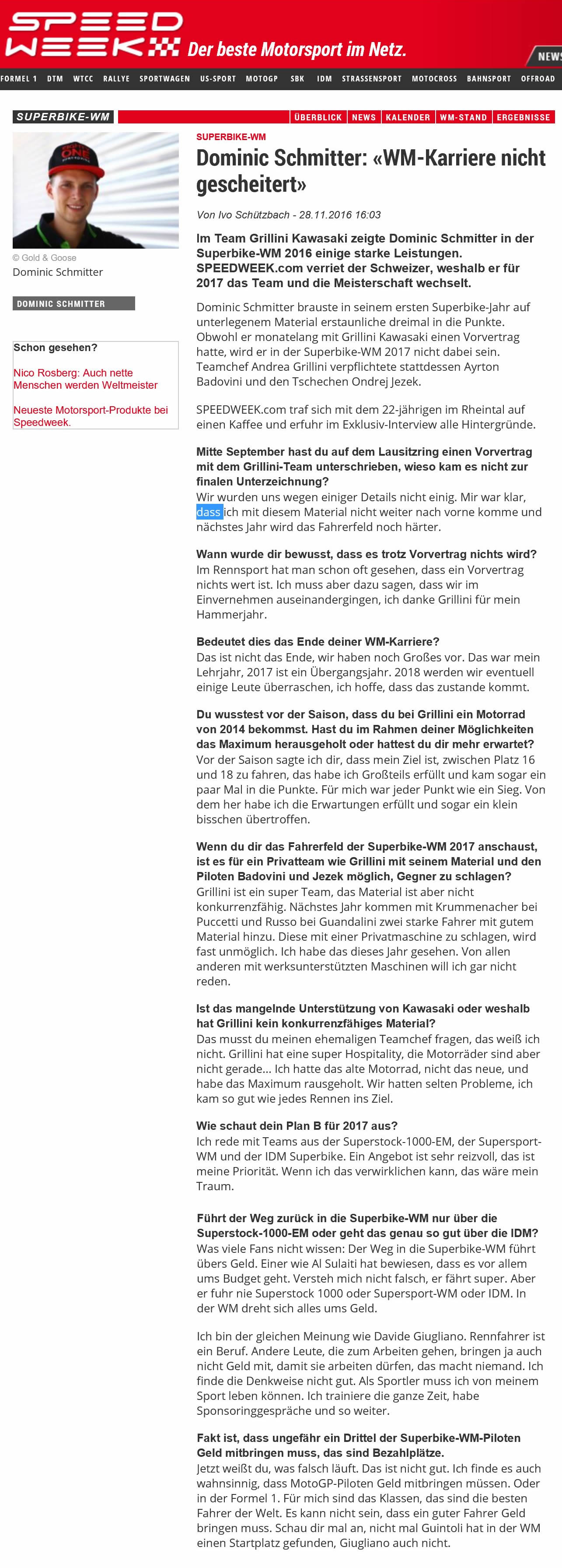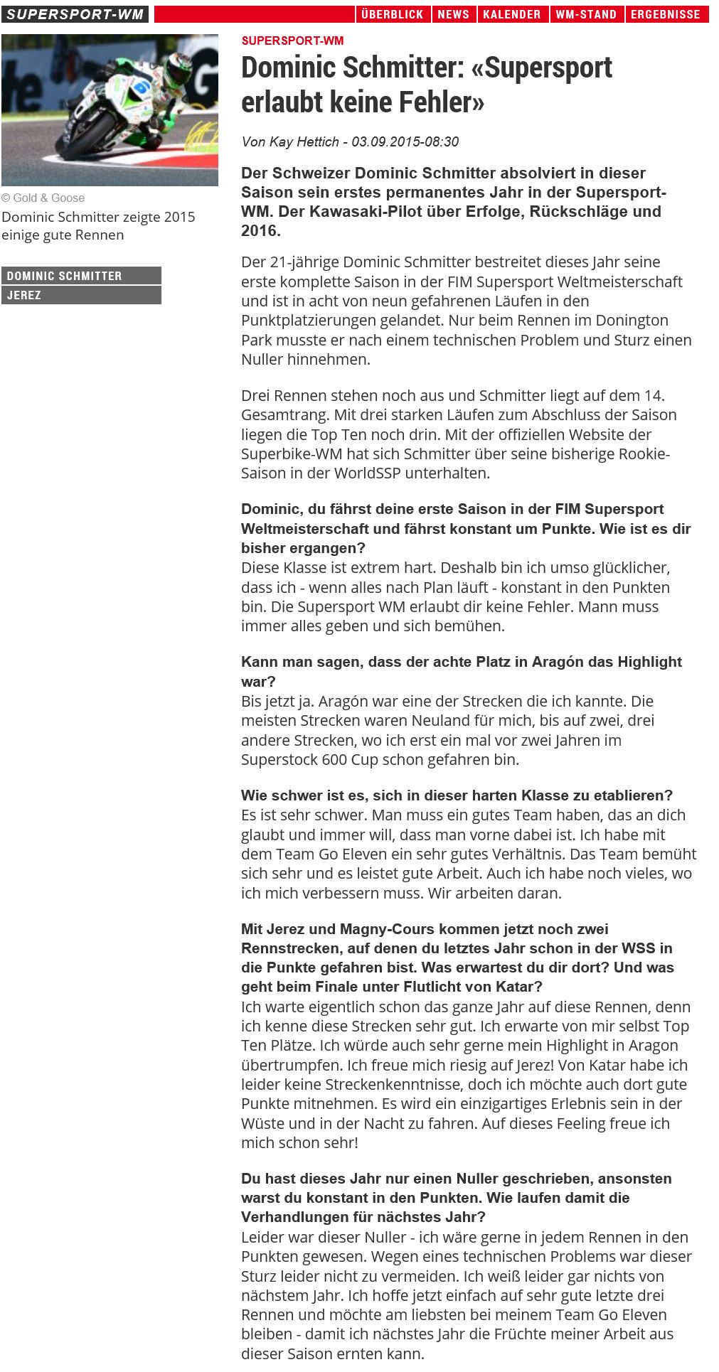• 2016 SBK Teams reden mit Dominic Schmitter