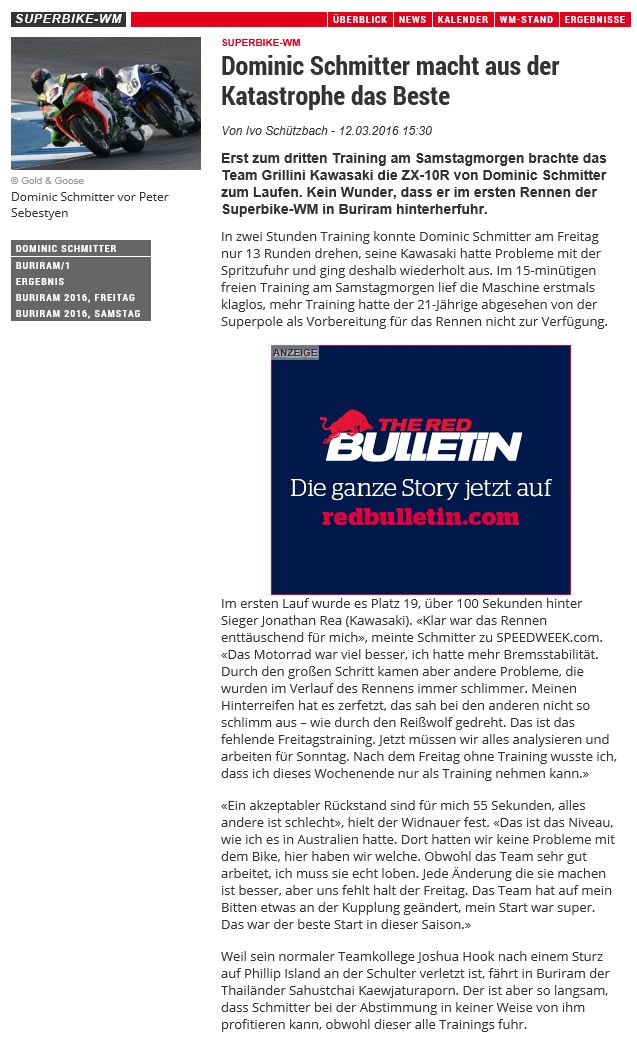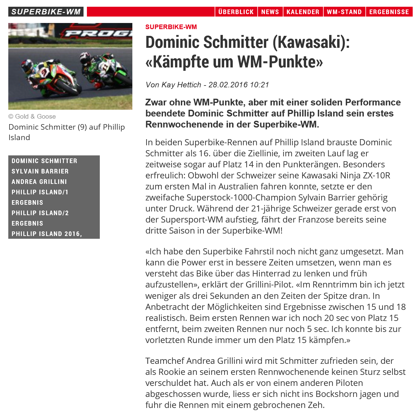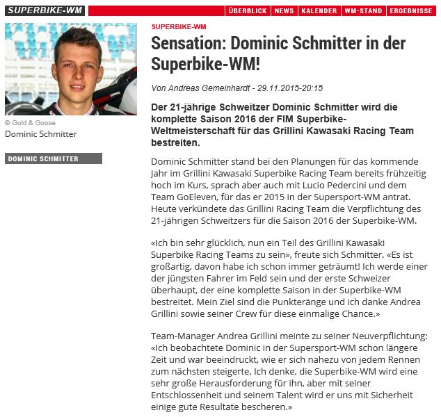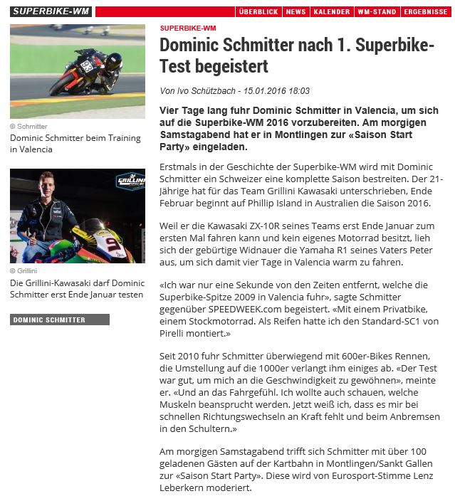 • 2016 Nach erstem Superbike Test begeistert