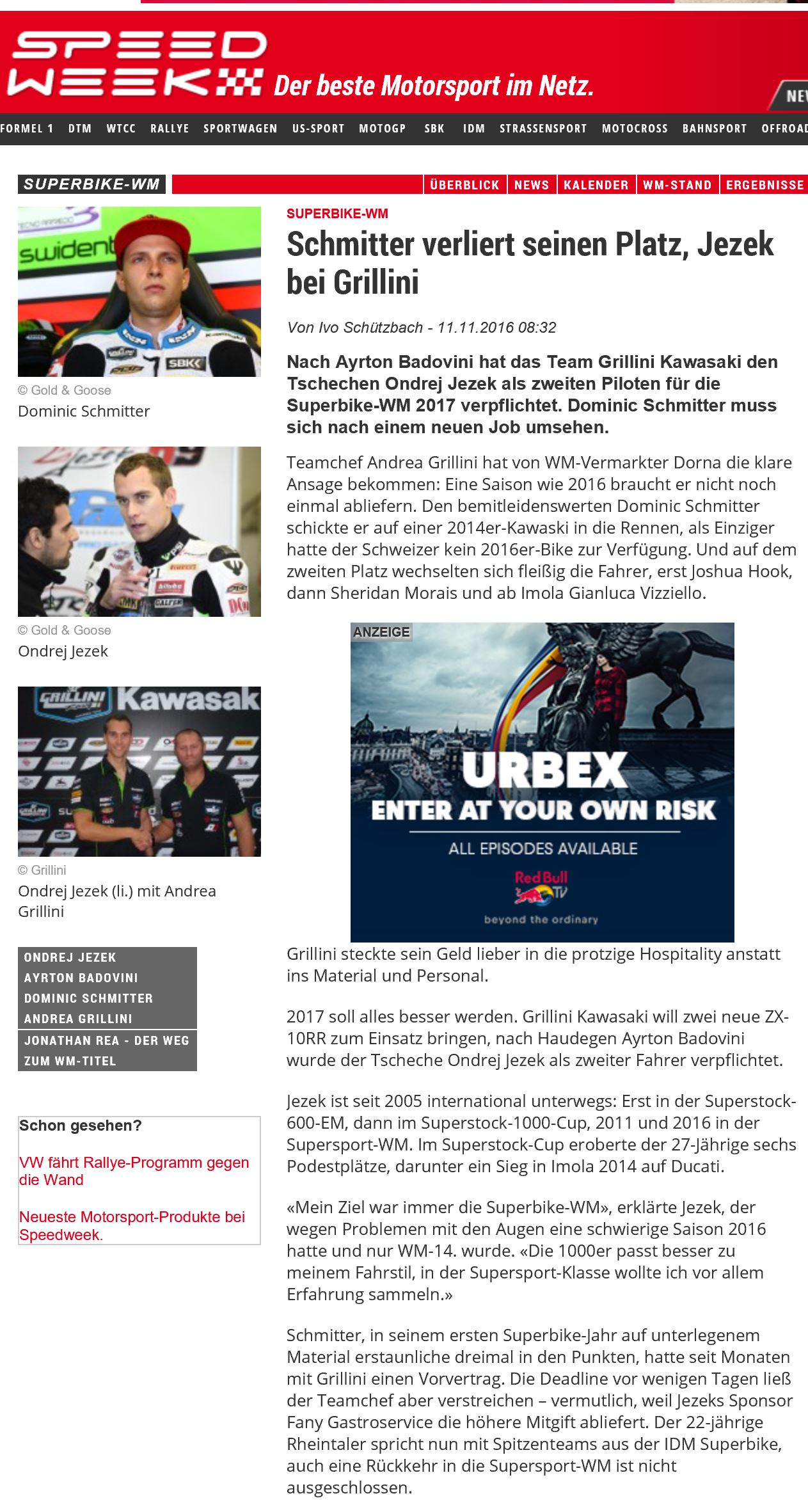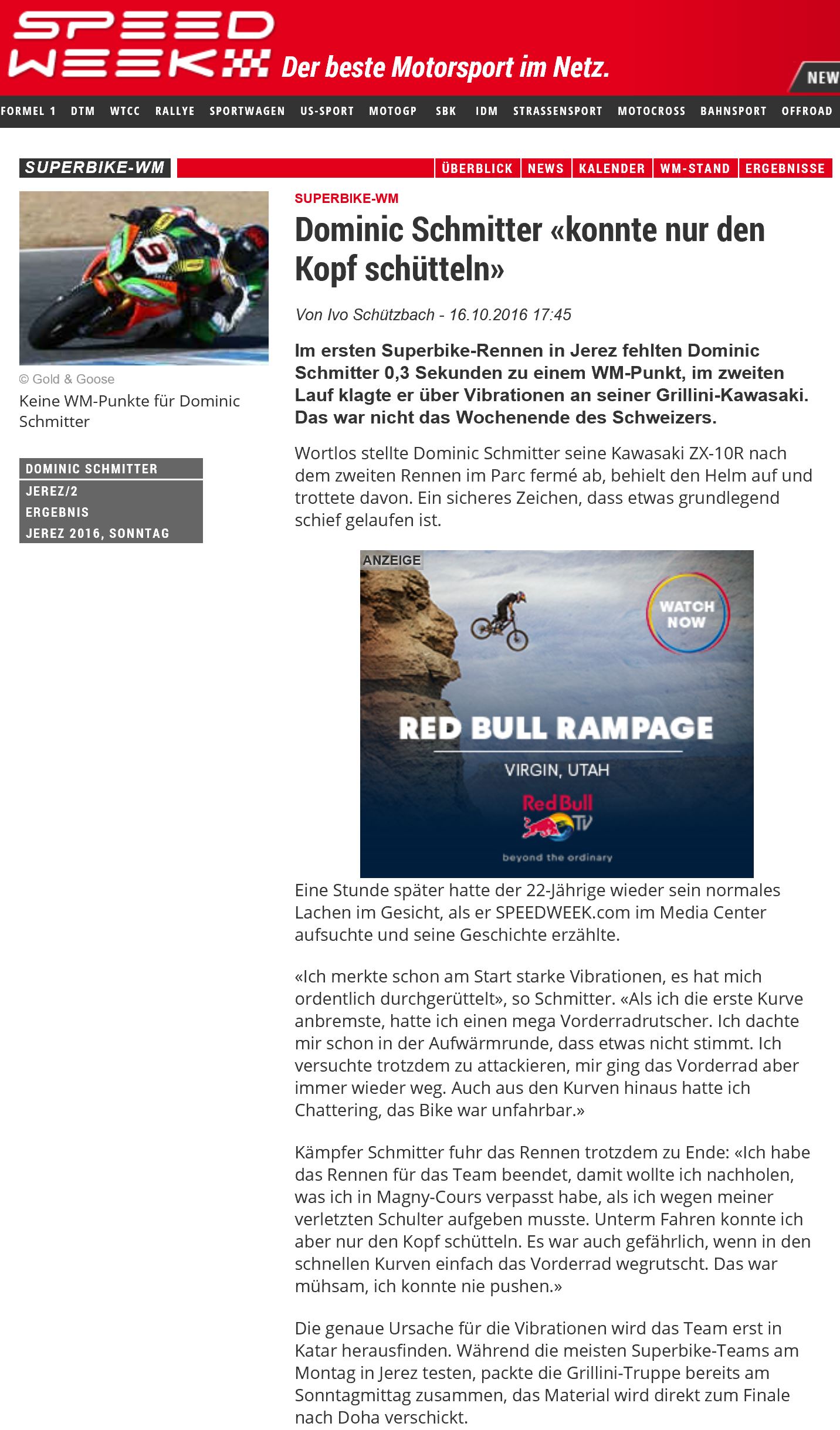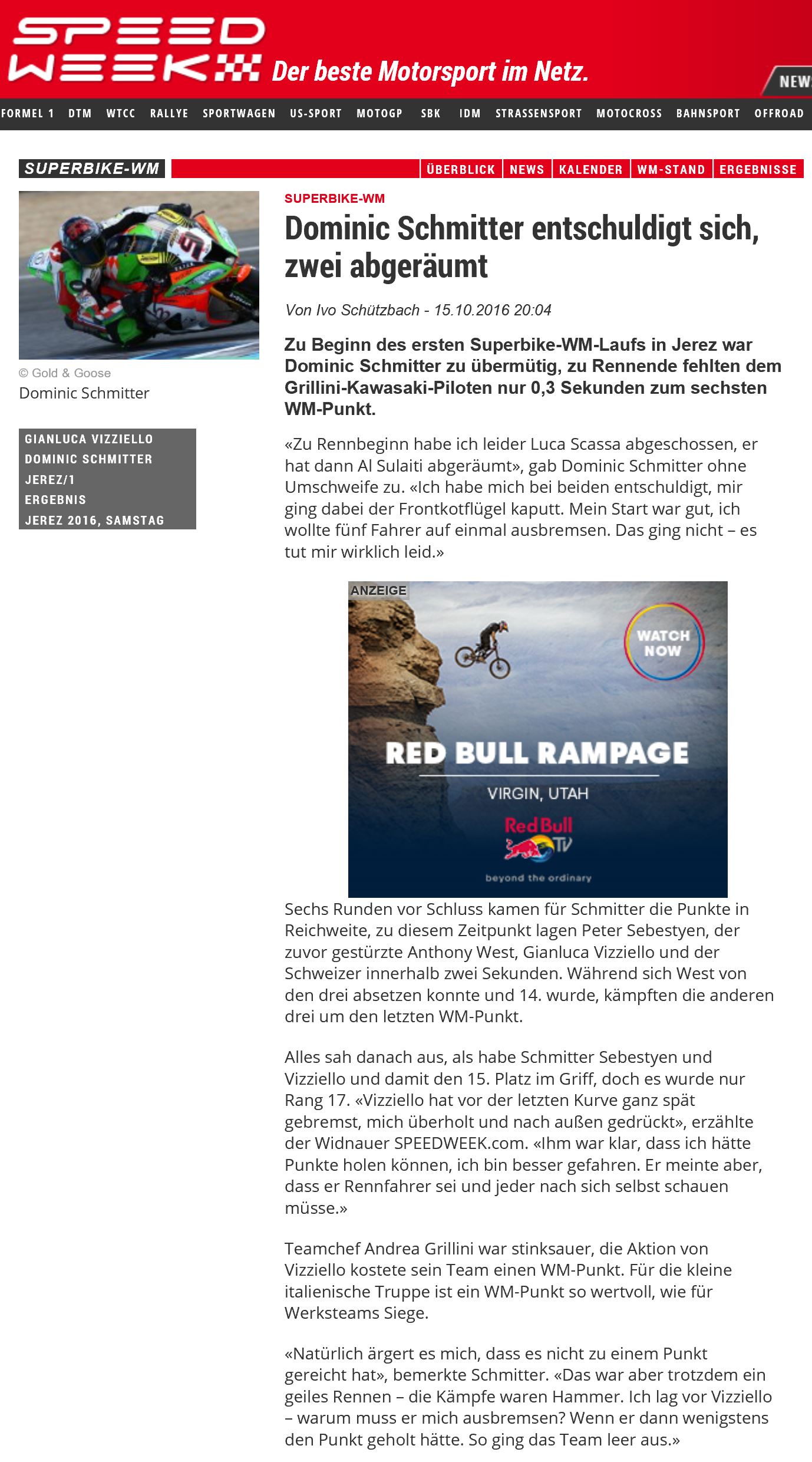 • 2016 Nach erstem Superbike Test begeistert