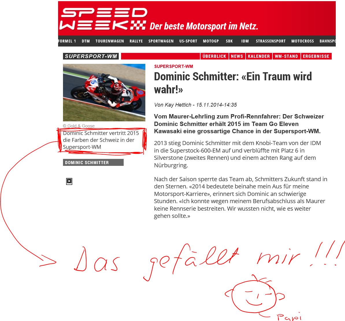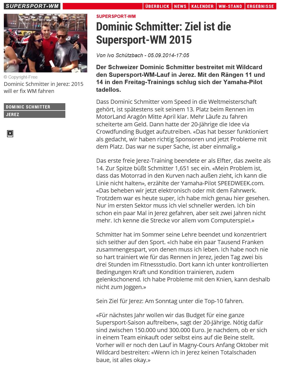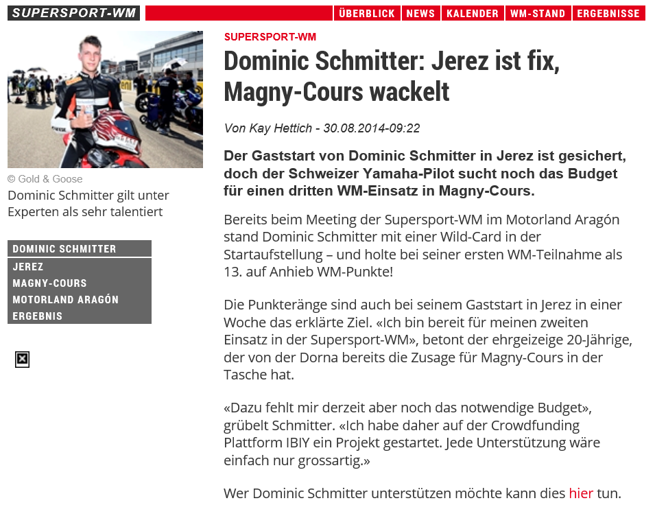 • 08   Supersport WM   3 WildCards jeweils in Top15   2014