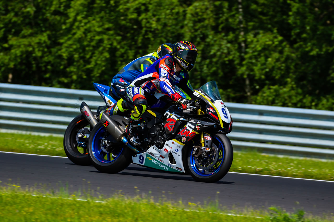 Das erste Rennen war anfangs schwierig für mich, da nach dem Start in der Schikane mir jemand ins Heck gefahren ist. Das Heck war dann krumm und ich musste mich zuerst einmal an das neue Fahrverhalten anpassen, bevor ich wieder pushen konnte. Ich bin dann auf Platz 9 zurück gefallen und von dort dann sukzessive Rang um Rang nach vorne gefahren und als zweiter ins Ziel gekommen. Der Sieger wurde wegen einer Regelwidrigkeit disqualifiziert und ich erbte meinen ersten IDM Superbike Laufsieg. Ich bin damit der erste Schweizer der einen IDM Superbike Lauf gewonnen hat.