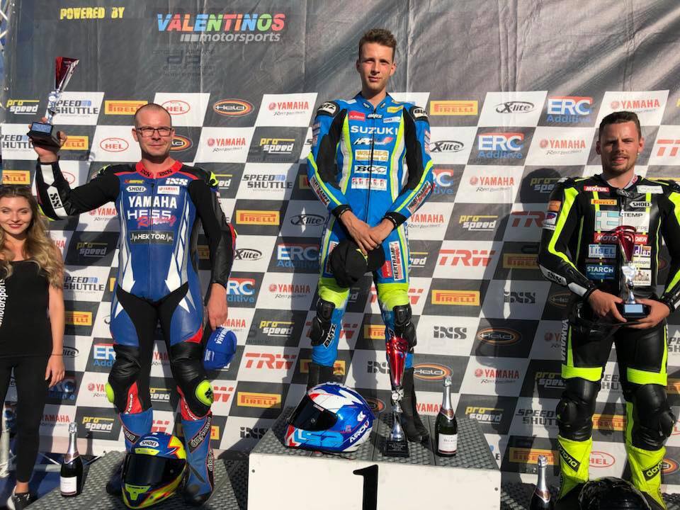 Vor dem zweiten Rennen mussten wir den Motor tauschen. Ich hatte daher ein etwas mulmiges Gefühl, weil dies doch ein komplett neues Motorrad darstellte. Dieses Gefühl liess sich aber im WarmUp beseitigen. Der neue Motor fühlte sich gegenüber dem alten Motor, welcher nun schon die ganze Saison 2017 bis jetzt ohne Revision gefahren wurde, sichtlich besser an. Also alles ist gut. Das zweite Rennen war um ca. 3 Sekunden auf die Gesamtdistanz schneller. Ich hatte einen guten Start, dann machte ich aber 2 Fehler und ich musste einsehen, dass ich hier lieber auf Nummer sicher fahre. Ich konnte das zweite Rennen mit einem konstanten Abstand verwalten und mir den zweiten Sieg sichern.